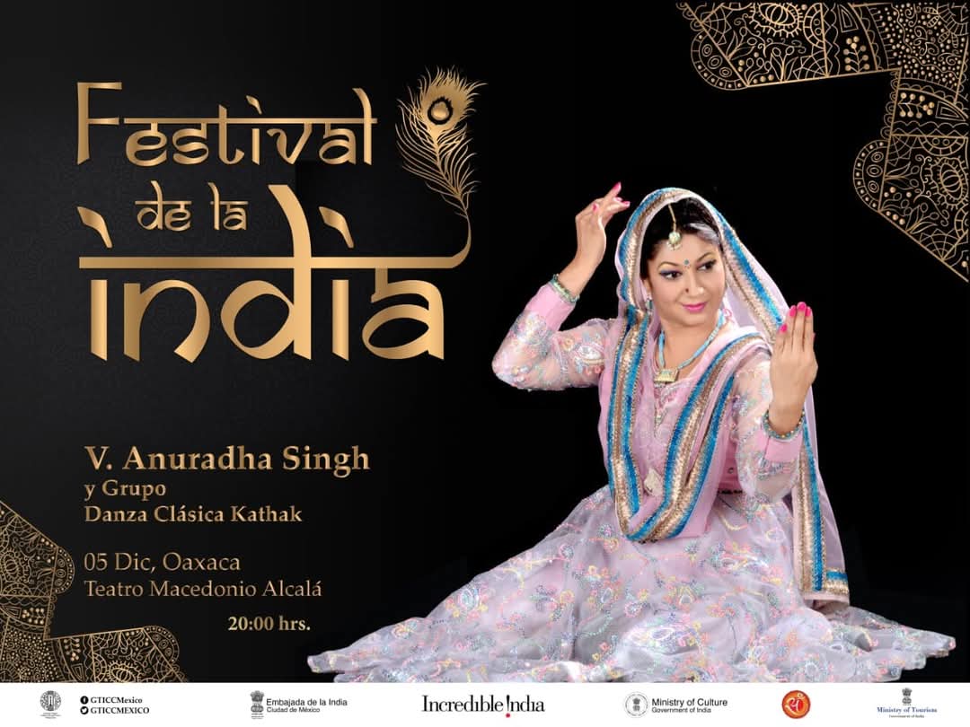 V Anuradha Singh was the only performer of Kathak who has been selected by Govt. Of India for her solo kathak dance performances with accompanists in Festival of India in Mexico. She has performed two hours solo kathak concerts in “ Festival of India” Mexico (various cities of Mexico in 30 Nov – 13 December 2019 ) organised by International Cultural Relations, Festival of India cell, Ministry of Culture, Government of India and Mexico.